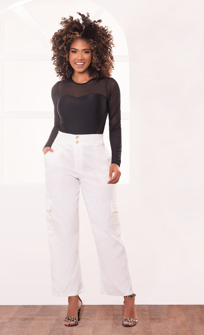 Pantalon Bota Recta Con Bolsillos Costados Funcionales Marfil